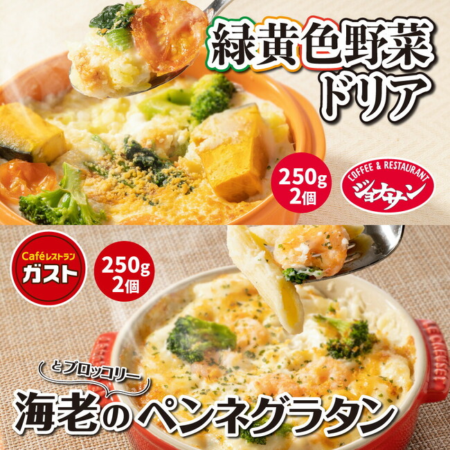 海老とブロッコリーのペンネグラタン&緑黄色野菜ドリアセット