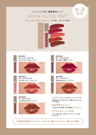 発売早々、SNSでは「本当に色落ちしない、発色がいい、ぷるぷる!理想のリップすぎて感動」「色が選べなくて全色買った!」という声が続出しており、早くもこの秋冬の定番アイテムの一つに。