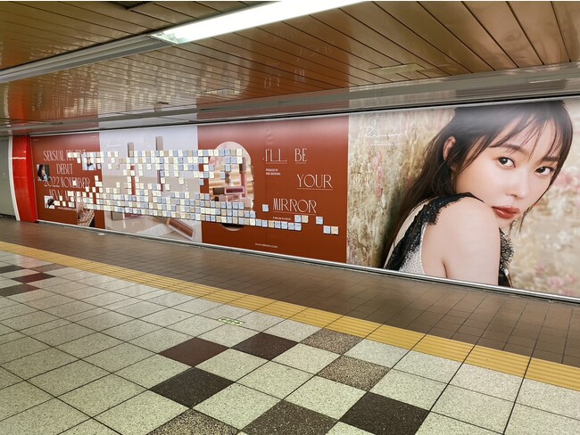 そして、発売を記念して、11月21日(月)〜11月27日(日)にかけて、新宿駅メトロプロムナードにて待望の新商品「センシュアルフィックスティント」の発売を記念したピールオフ広告を掲出いたしました。