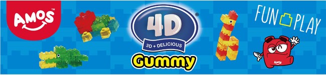 カンロは、日本における販売店として、世界中に商品を展開しているキャンディメーカー・Amos社のグミブランド「4Dグミシリーズ」の販売を行っています。「4Dグミ」は、Amos社が海外を中心に展開する「遊べる」「食べられる」「学べる」グミブランドで、精巧な形状が最大の特徴です。日本ではその可愛らしさや彩りの美しさからSNSを中心に発売当初より人気となっています。