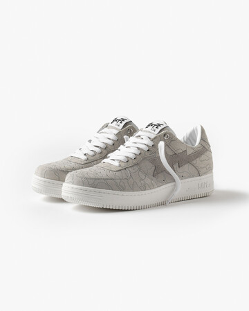 イタリア製のスエードを使用した高級感溢れるBAPE STA™?は、BAPE(R)?のアイコニックなシルエットにシグネチャーのBAPE(R)? CAMOを施し、SOLE BOXのシンプルでニュートラルなカラーリングと最高級なクラフトマンシップでお互いの特徴をひとまとめにしました。2021年にリリースを果たしたモデルを踏襲し、カラーリングをアップデート。