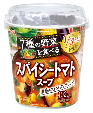 丸美屋食品工業株式会社(本社:東京都杉並区、社長:阿部豊太郎)では、「7種の野菜を食べる スパイシートマトスープ」を、2019年6月24日(月)からコンビニエンスストアで新発売いたします。「多くの種類の野菜をしっかり食べたい」というニーズに応えたカップスープを発売することで市場を盛り上げます。