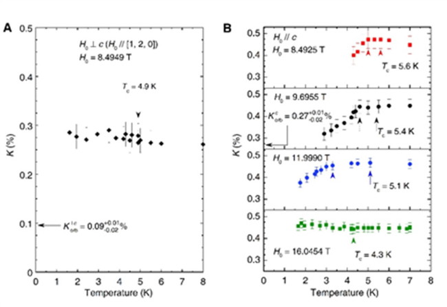 今回、鄭教授は中国科学院物理研究所の研究者と共同で、核磁気共鳴法測定によりK2Cr3As3がスピン三重項超伝導体であることを発見しました。これは、2016年に鄭教授らがCuxBi2Se3(転移温度3.5K)で発見したスピン三重項超伝導よりも高い臨界温度を持ちます。