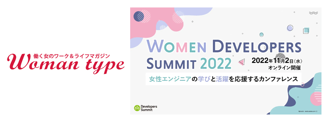 『女の転職type』のオウンドメディアである、働く女性のワーク&ライフマガジン『Woman type』(https://woman-type.jp/wt/feature/)は、昨年に続き、女性ITエンジニアが主役のカンファレンス「Women Developers Summit 2022」のメディアスポンサーになりました。