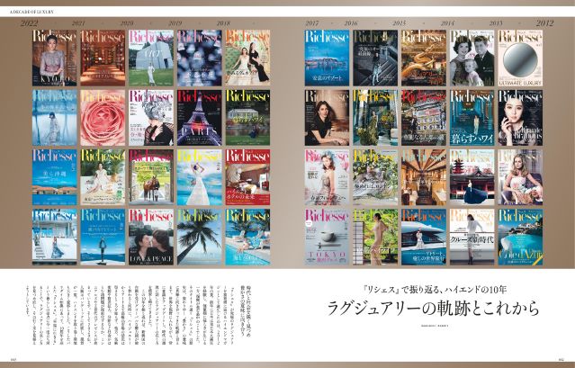 本物の豊かさを標榜する『Richesse』の創刊から10年が経ちました。私たちを取り巻く社会や価値観が大きく移り変わるターニングポイントに立ち会うなかで、誌面に映してきたものとは…。