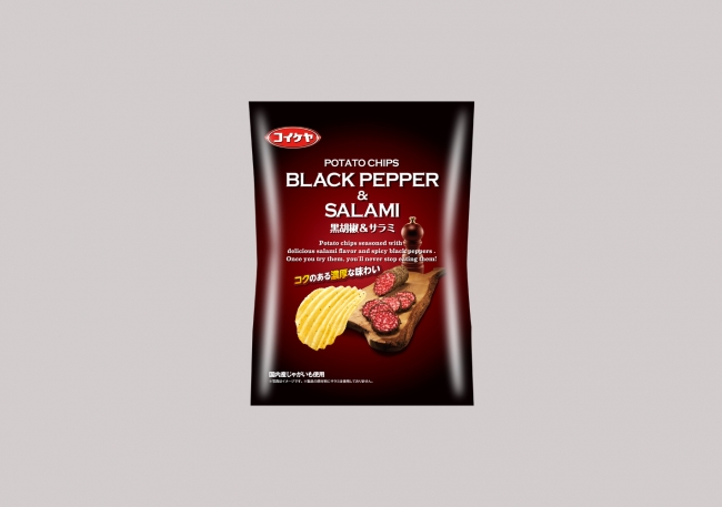 旨みと刺激が“オトナ専用”コクのある濃厚な味わいをお酒とともに嗜む「ポテトチップス 黒胡椒&サラミ ウェーブタイプ」