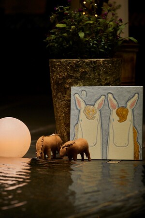 二人の作品にながれるあたたかな肌触り、絵肌。二人からうまれた動物たちがあなたの視線に、触覚にふれて寄り添います。