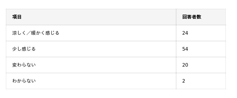 ・体感温度が向上し、室内で過ごす時間の快適さが上がった人が8割ほど。