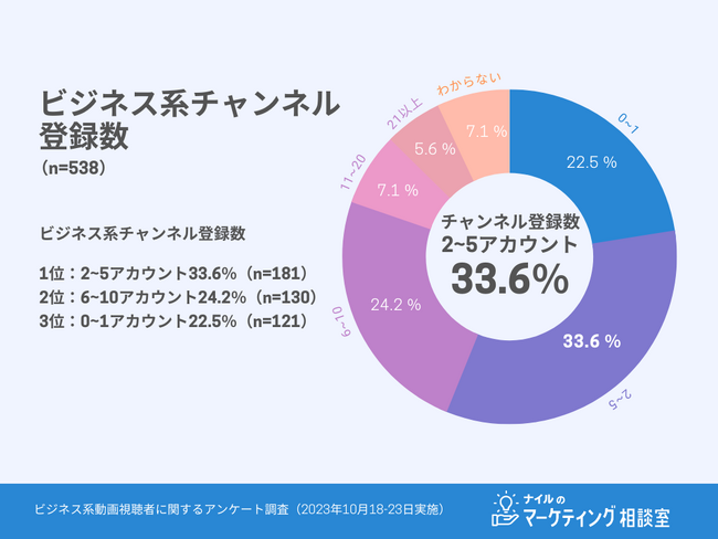・ビジネス系YouTubeチャンネル登録数「2〜5アカウント」が最多