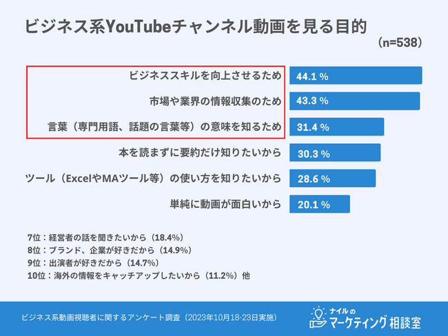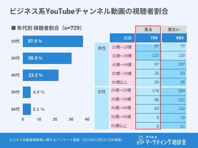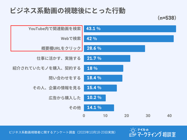 【YouTube調査】約4割がビジネス系動画を視聴すると回答|2023年10月実施「ナイルのマーケティング相談室」調べ