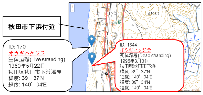 また、既に公開している「海棲哺乳類ストランディング情報データベース」とも連動しているため、より詳細な情報の取得や比較も可能になります。