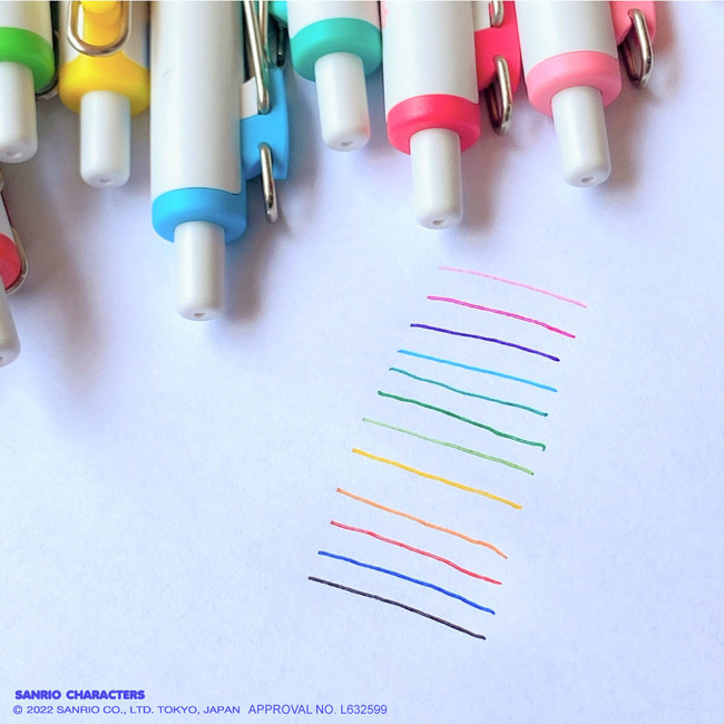 三菱鉛筆株式会社の大人気商品である「uni-ball one(ユニボール ワン)」は2020年2月に発売された新開発ゲルインクボールペンで、シンプルでストレートな軸デザインが特徴的なボールペンです。一般的なゲルインクと比べ黒色は一層濃く、カラーはより鮮やかに発色するため、印象的なノートを作ることができると学生からの人気が高く、今回のサンリオキャラクターズをデザインした商品を企画しました。
