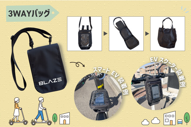 ブレイズEVバイクに取り付けることもできる3WAYバッグです。