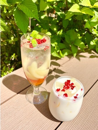 沢山の白桃が入った夏にはぴったりの爽やかなソーダになっています☆