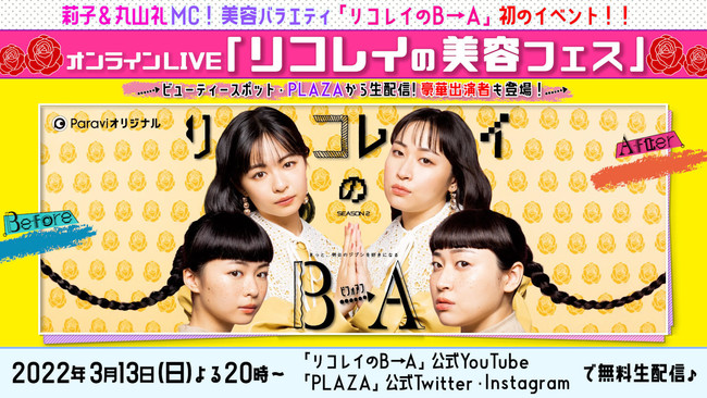 無料生配信は、「リコレイのB→A」公式YouTube、「PLAZA」公式Twitter・Instagramで予定している。