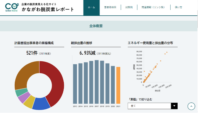 企業の脱炭素見える化サイト「かながわ脱炭素レポート」