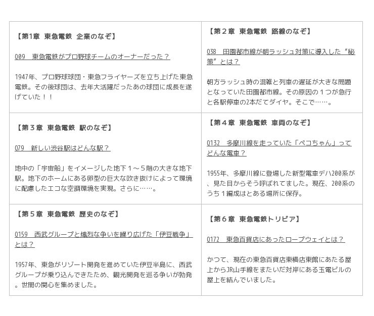 プロ野球? ペコちゃん? ロープウェイ!? 鉄道ぴあ特別編『 東急電鉄200のなぞ』 〜企業、路線、駅、車両、歴史、トリビアの全6章にわけて紹介〜