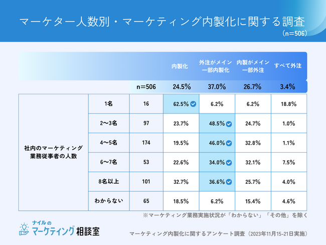 DX&マーケティング事業を展開するナイル株式会社(本社:東京都品川区、代表取締役:高橋 飛翔、以下、ナイル)は、マーケティング担当者506名を対象に、マーケティング業務の内製化(インハウスマーケティング)に関する調査を実施しました。