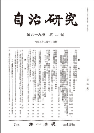 法律関連出版物、各種データベースを提供する第一法規株式会社(所在地:東京都港区、代表取締役社長:田中 英弥)は、『自治研究2月号』を1月27日に発刊しました。