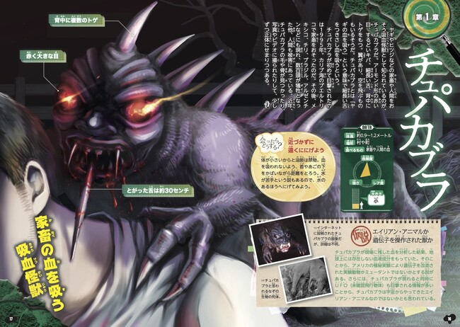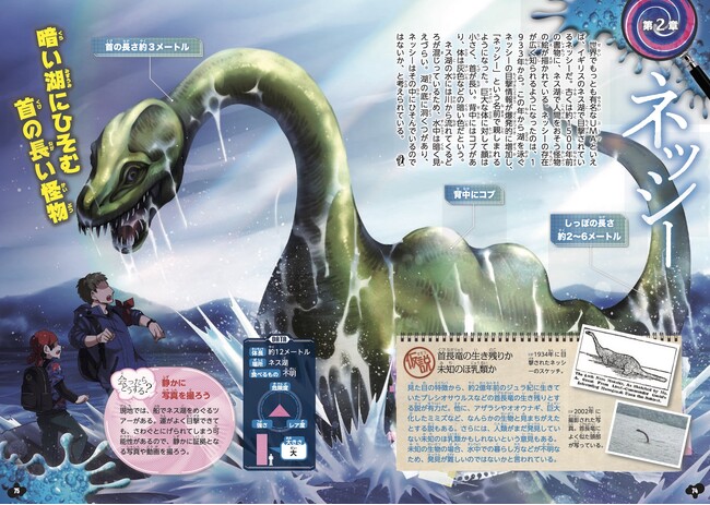 解説ページでは、未確認生物UMAのすがたをとらえた写真や、目撃された場所、正体だと推測されている生物の写真をふんだんに掲載。