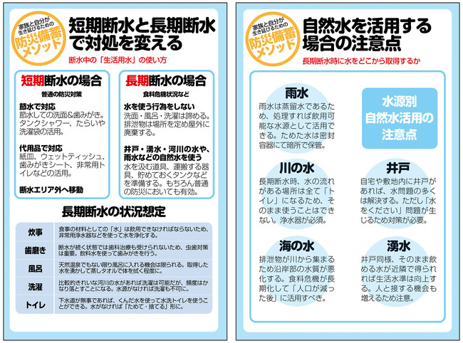 河川・雨水・湧き水の活用 非常用浄水器の活用 水の長期備蓄…準備と本番の想定