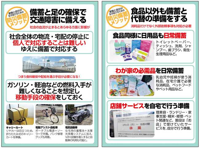 物不足の影響は食料品以外にも生じます。食事という重要な要素が不足すると、社会が止まってしまうのです。食品以外の生活物資も、あわせて備蓄することが重要です。