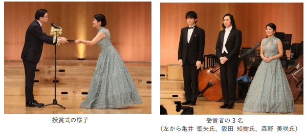 授賞式では、今回の受賞者である亀井 聖矢氏(ピアノ)、阪田 知樹氏(ピアノ)、森野 美咲氏 (ソプラノ)の 3 名を表彰し、賞状と賞金を授与しました。続くガラコンサートでは、若き音楽家 たちが躍動感に満ちた演奏と歌声を披露し、会場には情感豊かな音色が響きました。 本コンサートの模様は、2 月 24 日(土)の「題名のない音楽会」(テレビ朝日系列、土曜朝 10:00 〜10:30)で放映される予定です(一部地域で放送時間が異なります)。ぜひご覧ください。