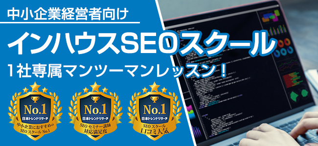 日本トレンドリサーチ(運営会社:株式会社NEXER)がおこなったSEOスクールについての調査において、スリードット株式会社(所在地:大阪府大阪市、代表取締役:二川 泰久)の運営する『インハウスSEOスクール』が、「SEOセミナー講師 対応満足度」「中小企業におすすめのSEOスクール」「SEOスクール 口コミ人気」の3項目で第1位を獲得しました。
