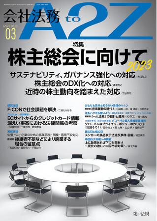 【会社法務A2Z】最新の企業トレンドや法改正情報の解説を毎月お届け!2023年3月号特集は”株主総会に向けて 2023”!