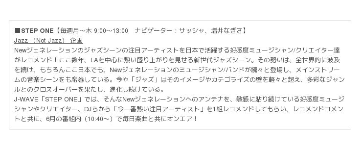 6月の1か月間J-WAVEの各番組でJAZZをご紹介&オンエア!
