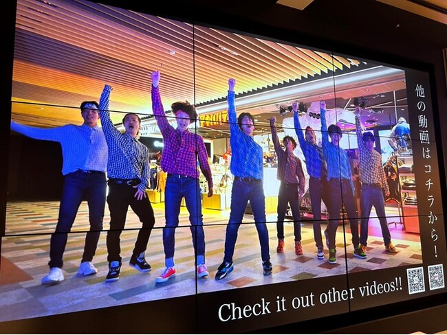 本コラボでは2024年5月6日から、ショップに設置されている9面マルチモニターにてRABがシンボル「ダンスの像」前で撮影した「踊ってみた」動画が放映される。動画を目にすることが出来るのは1時間に2回のペースとなっているため、訪れる際は要注意だ。