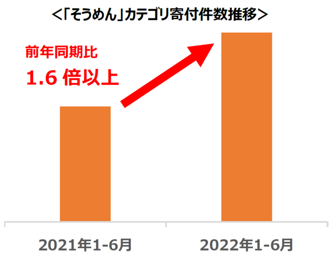 〜夏の風物詩“そうめん”の1〜6月寄付件数は前年同期比で1.6倍以上に増加〜