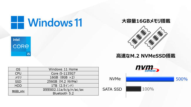 従来の同クラスより約18%性能が向上した第11世代インテル(R) Core™ プロセッサーに