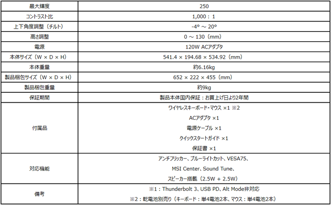 「Modern AM242P 11M-1441JP」は丁度よい大きさの23.8インチ、フルHD(1,920 × 1,080)解像度、高画質・広視野角が特徴なIPSパネルを搭載した液晶モニター内部にデスクトップPCとしての機能を搭載しており、モニター1台分のスペースでPCとして利用することが出来ます。インテル(R) Core™ i5-1135G7、SSD 256GB(M.2 NVMe) +HDD 1TB(2.5インチ)、16GBの大容量メモリを搭載しておりマルチタスクも快適にこなすことが出来ます。MSI独自のソフトウェアとしてシステム設定やマイクのノイズキャンセル機能の追加が可能なMSI Centerがプリインストールされており、機能としてテレワークやデュアルモニター環境を手軽に導入可能なHDMI入出力端子、プライバシーシャッター付きWebカメラ、アンチフリッカー、ブルーライト軽減機能を搭載することで長時間の使用においても目の疲れを抑え、オフィスワーク・テレワーク・オンライン授業などに最適です。また、VESAマウントにも対応しモニターアームに取り付け、使用しないときは端へ移動しデスクスペースを確保することも可能です。なお、付属品には設定が不要ですぐに使用することができるワイヤレスキーボード・マウスが付属しており、ケーブルや設置場所を気にせずに利用可能です。