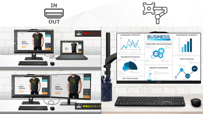 また、モニターアームへの取り付けに対応しており、限られたスペースでも設置可能です。