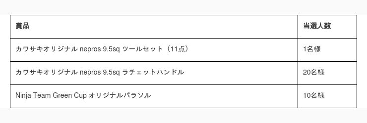「nepros(ネプロス)ツールセット」(1名様)をはじめとした豪華賞品を計31名様へプレゼントします。