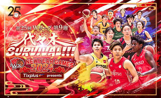 なお、大会名称は「第25回Wリーグ 第9週 代々木 SURVIVAL!!! Tixplus presents WコレNEW YEAR GAMES 2024」となります。総勢12チームが集まり、4日間に渡って繰り広げられる熱戦をご期待ください。