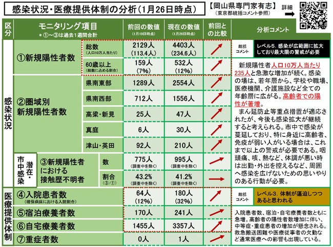 【岡山大学】岡山県内の感染状況・医療提供体制の分析について(2022年1月26日時点)