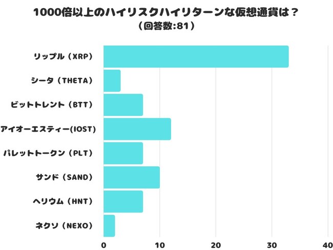 株式会社レビュー(https://jafmate.co.jp/)が運営する暮らしに役立つ情報メディア「仮想通貨マガジン」( https://jafmate.co.jp/crypto/ )は、日本全国の10代以上の方を対象に「狙うなら一攫千金!目指すは1000倍以上のハイリスクハイリターンな仮想通貨」についてのアンケート調査を実施しました。