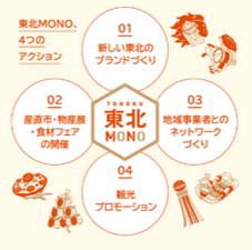東北MONOとは、東日本大震災から10年目となる2021年4月より実施された「東北デスティネーションキャンペーン」を契機として、さらなる東北地域の復興を加速するために、JR東日本グループが連携して行うプロジェクトです。このプロジェクトで定めた4つのアクションを通じて、元気で豊かな東北の魅力をさらに発信します。