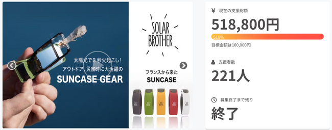 ??太陽光だけで3秒火起こし!アウトドア、防災グッズにも“SuncaseGear”!