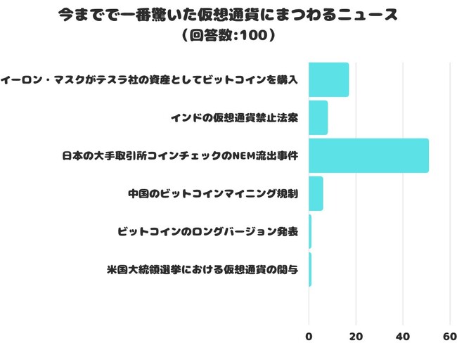 今までで一番驚いた仮想通貨にまつわるニュースをアンケートにて調査したところ、1位は「日本の大手取引所コインチェックのNEM流出事件」でした。