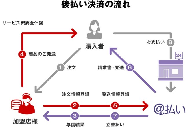 後払い決済サービスとは、お客様が通販で購入した商品が到着し、商品確認をした後に、お近くのコンビニエンスストアやお手持ちのスマートフォンの決済アプリでお支払いをすることができる安心の決済方法です。