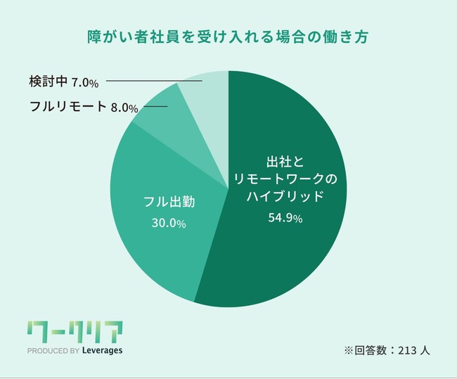 レバレジーズ株式会社が運営する、障がい者就労支援サービス「ワークリア(https://worklear.jp/partner/ )」は、障がい者雇用に関わるIT企業の採用担当者213名を対象に、障がい者雇用の実態調査を実施しました。