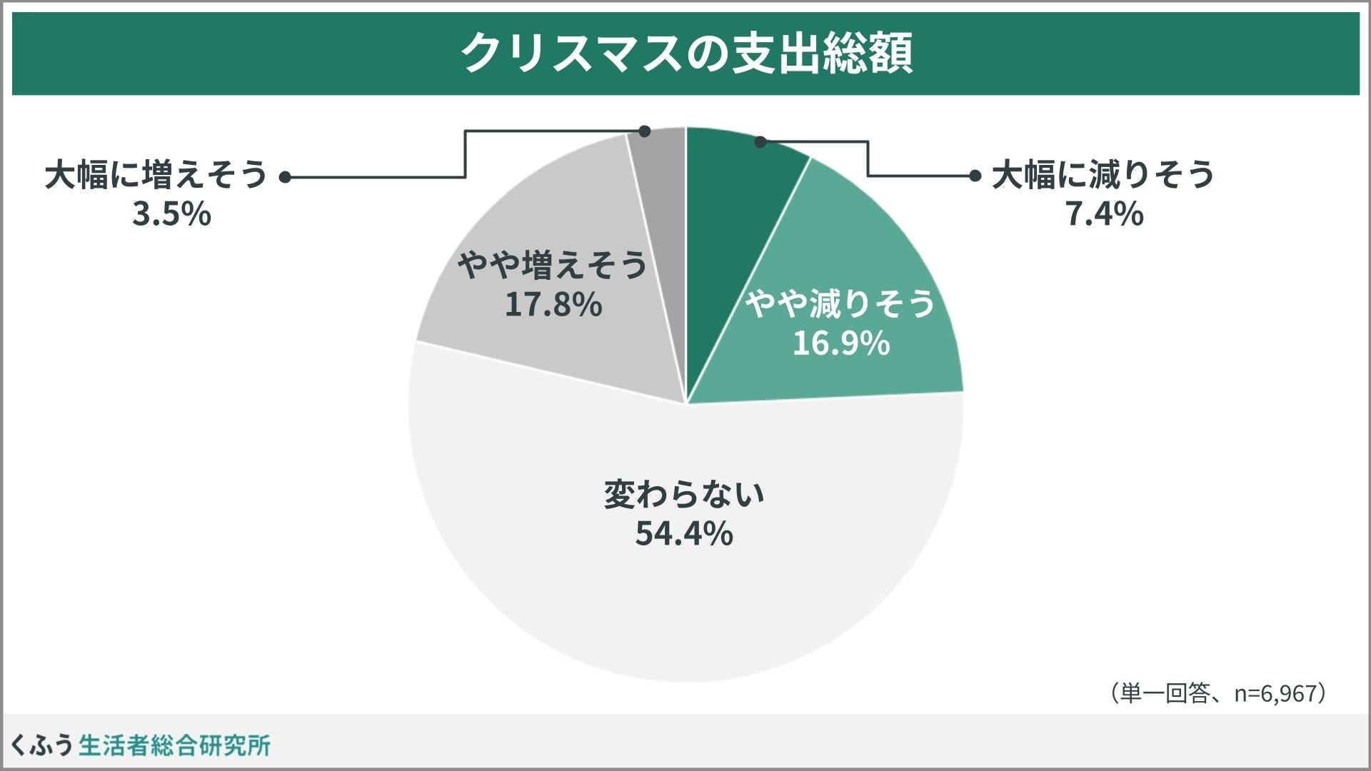 クリスマスの支出総額は半数以上が「昨年と変わらない」と回答。「変わらず使う」派と「変わらないように抑える」派に分かれる