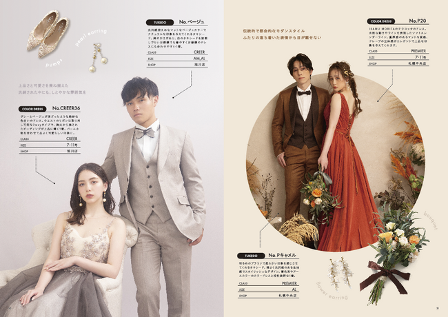 お揃いの色を取り入れてみたり、トーンを揃えてみたりふたりらしさをプラスすることも。