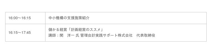 1.名称:中小企業成長応援セミナー 儲かる経営「計画経営のススメ」