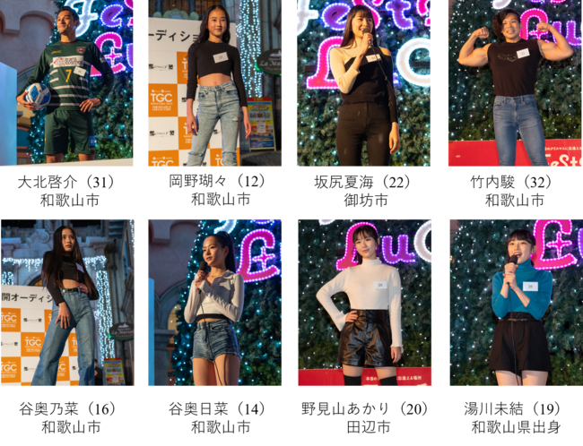 11歳以上の和歌山県在住および、和歌山県出身の方を対象に募集した本オーディションには、約600名もの応募が集まり、書類審査を通過した29名の候補者が公開2次審査に参加。会場が幻想的なイルミネーションと真っ白な雪に包まれる中ランウェイ、そして特技を披露、さらにそれぞれが所縁のある和歌山市での開催に向けて熱い想いや夢を語りました。