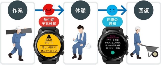 ・回復状態も検知し、現場での適切な休憩および現場復帰を促す