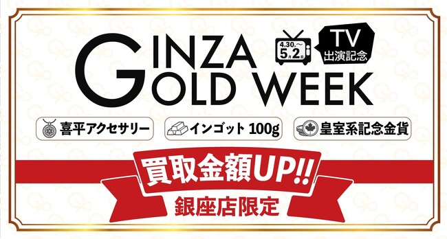 2023年3月より、米金融不安に端を発した金相場高騰が始まり、史上最高価格を連日更新するに至りました。ゴールドプラザ各店では高騰した金の売却件数が増加しております。金相場高騰からの売却件数増加という内容に関してテレビ取材を9番組程放映いただいたことで取材店舗であるゴールドプラザ銀座店の来店が倍増いたしました。今回、ゴールドプラザ銀座店では来店客増加と弊社へのご愛顧にお応えすべく、ゴールデンウィークキャンペーンを開催することにいたしました。